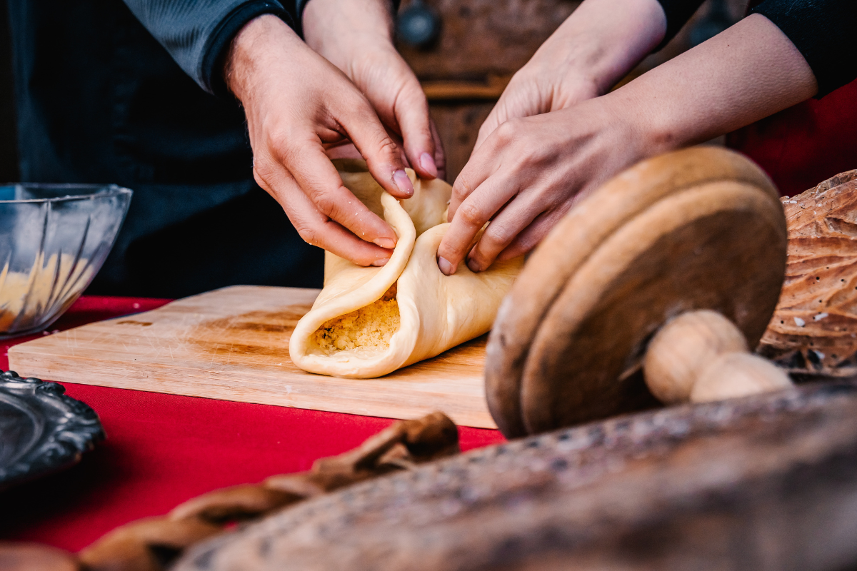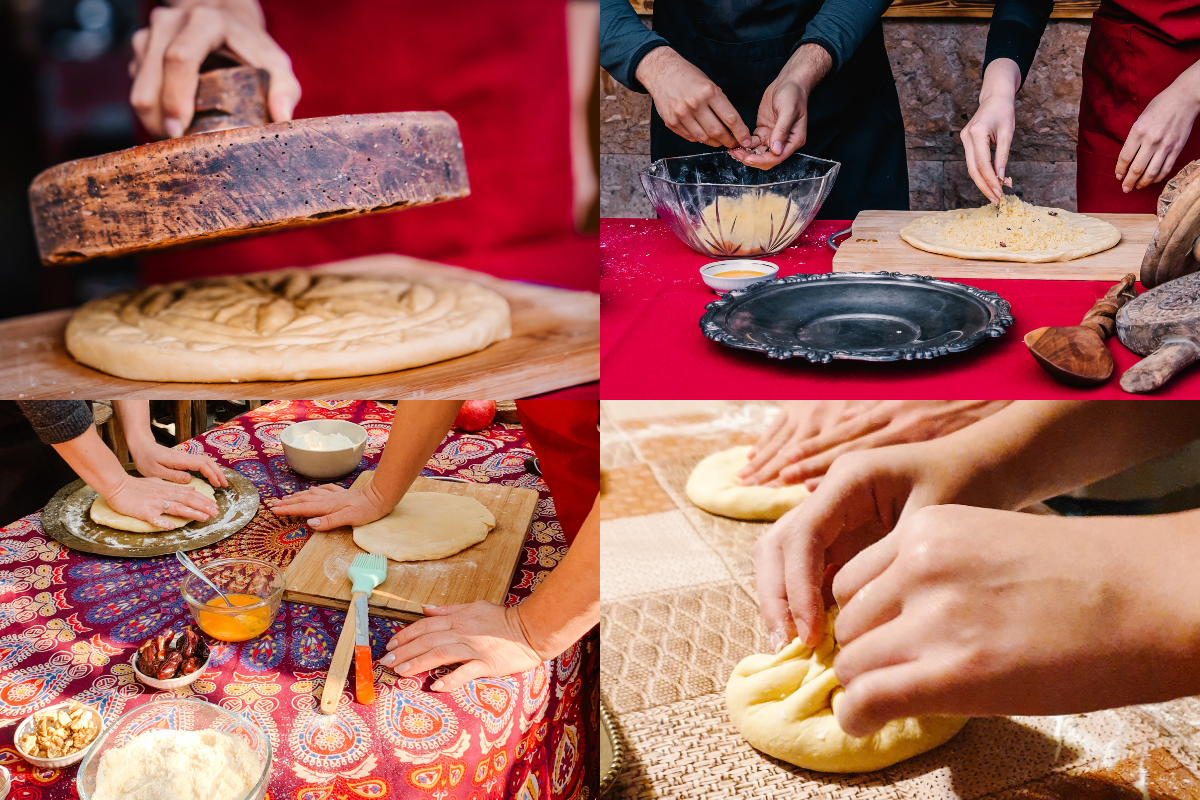 You will receive your own dough ball (please note that the dough and filling are pre-prepared with love!) to master the rhythmic art of shaping it to perfection. Next, you will use the luscious traditional filling called Khoriz; a heavenly mix of flour, sugar, and butter and tuck it expertly inside the dough. Then, you will learn traditional techniques on how to form that dough into iconic round Gatas, securely enclosing the sweet heart of the pastry. Before baking, to transform this creation into art you will use special wooden patterns to press intricate motifs into the surface. At this point, the local experts will reveal to you the hidden cultural meanings behind these ancient Armenian designs. This isn't just baking; it’s art you can eat!